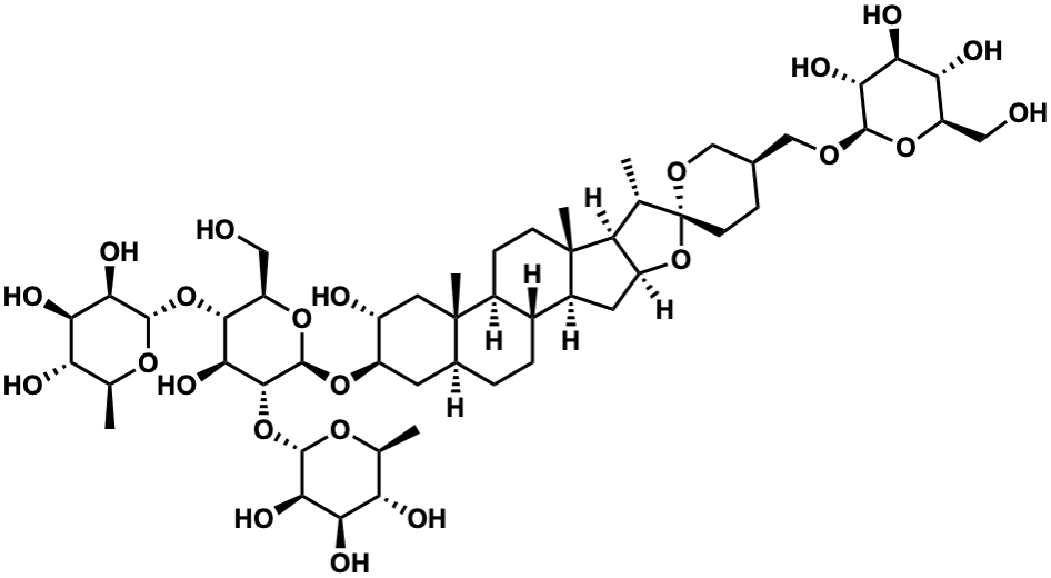 InChI=1S/C51H84O23/c1-19-32-29(74-51(19)11-8-22(18-66-51)17-65-45-39(61)38(60)35(57)30(15-52)70-45)13-26-24-7-6-23-12-28(27(54)14-50(23,5)25(24)9-10-49(26,32)4)69-48-44(73-47-41(63)37(59)34(56)21(3)68-47)42(64)43(31(16-53)71-48)72-46-40(62)36(58)33(55)20(2)67-46/h19-48,52-64H,6-18H2,1-5H3/t19-,20-,21-,22+,23-,24+,25-,26-,27+,28+,29-,30+,31+,32-,33-,34-,35+,36+,37+,38-,39+,40+,41+,42-,43+,44+,45+,46-,47-,48+,49-,50-,51+/m0/s1 |