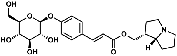 O=C(/C=C/c1ccc(O[C@@H]2O[C@H](CO)[C@@H](O)[C@H](O)[C@H]2O)cc1)OC[C@@H]1CCN2CCC[C@H]12 |