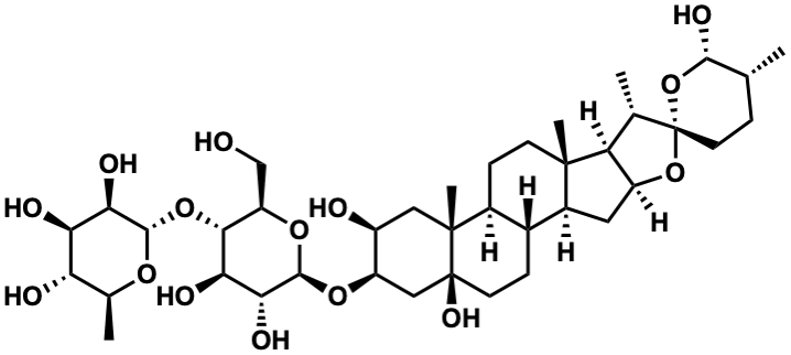 InChI=1S/C39H64O15/c1-16-6-11-39(54-33(16)47)17(2)26-23(53-39)12-21-19-7-10-38(48)14-24(22(41)13-37(38,5)20(19)8-9-36(21,26)4)50-35-31(46)29(44)32(25(15-40)51-35)52-34-30(45)28(43)27(42)18(3)49-34/h16-35,40-48H,6-15H2,1-5H3/t16-,17+,18+,19-,20+,21+,22+,23+,24-,25-,26+,27+,28-,29-,30-,31-,32-,33+,34+,35-,36+,37-,38+,39+/m1/s1 |