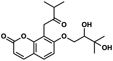 CC(C)C(=O)Cc1c(OCC(O)C(C)(C)O)ccc2ccc(=O)oc12 |