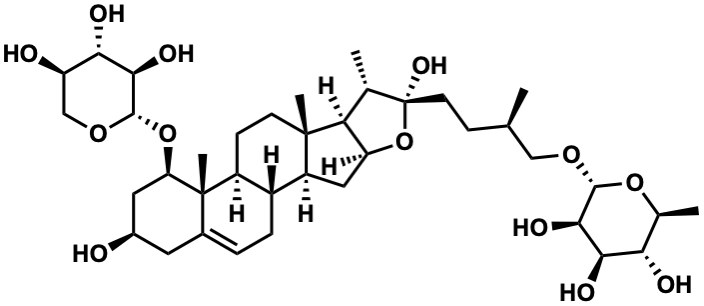 InChI=1S/C38H62O13/c1-17(15-47-34-33(45)31(43)29(41)19(3)49-34)8-11-38(46)18(2)28-26(51-38)14-24-22-7-6-20-12-21(39)13-27(37(20,5)23(22)9-10-36(24,28)4)50-35-32(44)30(42)25(40)16-48-35/h6,17-19,21-35,39-46H,7-16H2,1-5H3/t17-,18+,19+,21-,22-,23+,24+,25-,26+,27-,28+,29+,30+,31-,32-,33-,34-,35+,36+,37+,38-/m1/s1 |