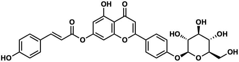 O=C(/C=C/c1ccc(O)cc1)Oc1cc(O)c2c(=O)cc(-c3ccc(O[C@@H]4O[C@H](CO)[C@@H](O)[C@H](O)[C@H]4O)cc3)oc2c1 |