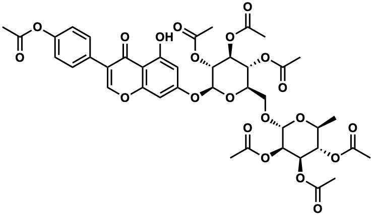 InChI=1S/C41H44O21/c1-17-34(55-19(3)43)36(57-21(5)45)38(59-23(7)47)40(53-17)52-16-31-35(56-20(4)44)37(58-22(6)46)39(60-24(8)48)41(62-31)61-27-13-29(49)32-30(14-27)51-15-28(33(32)50)25-9-11-26(12-10-25)54-18(2)42/h9-15,17,31,34-41,49H,16H2,1-8H3/t17-,31+,34-,35+,36+,37-,38+,39+,40+,41+/m0/s1 |