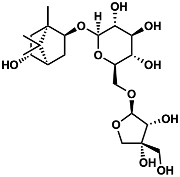 InChI=1S/C21H36O11/c1-19(2)9-4-12(20(19,3)5-10(9)23)32-17-15(26)14(25)13(24)11(31-17)6-29-18-16(27)21(28,7-22)8-30-18/h9-18,22-28H,4-8H2,1-3H3/t9-,10+,11+,12-,13+,14-,15+,16-,17-,18+,20-,21+/m0/s1 |