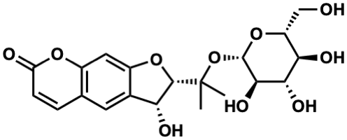CC(C)(O[C@@H]1O[C@H](CO)[C@@H](O)[C@H](O)[C@H]1O)[C@H]1Oc2cc3oc(=O)ccc3cc2[C@H]1O |