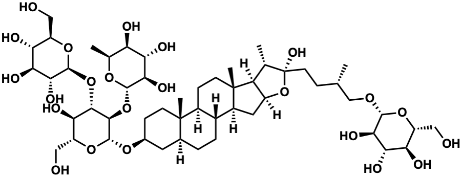 InChI=1S/C51H86O23/c1-20(19-66-45-40(62)38(60)34(56)29(16-52)69-45)8-13-51(65)21(2)32-28(74-51)15-27-25-7-6-23-14-24(9-11-49(23,4)26(25)10-12-50(27,32)5)68-48-44(73-46-41(63)37(59)33(55)22(3)67-46)43(36(58)31(18-54)71-48)72-47-42(64)39(61)35(57)30(17-53)70-47/h20-48,52-65H,6-19H2,1-5H3/t20-,21-,22-,23-,24-,25+,26-,27-,28-,29+,30+,31+,32-,33+,34+,35+,36+,37-,38-,39-,40+,41+,42+,43-,44+,45+,46-,47-,48+,49-,50-,51+/m0/s1 |