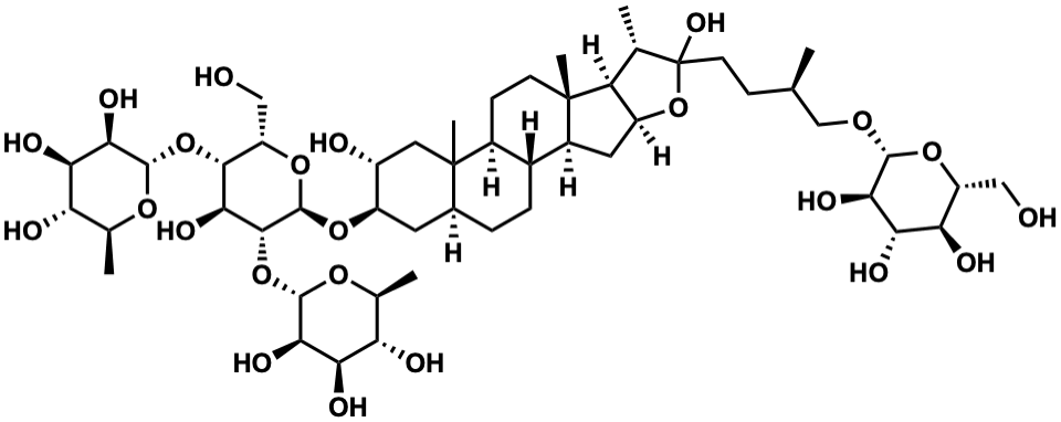 InChI=1S/C51H86O23/c1-19(18-66-45-39(61)38(60)35(57)30(16-52)70-45)9-12-51(65)20(2)32-29(74-51)14-26-24-8-7-23-13-28(27(54)15-50(23,6)25(24)10-11-49(26,32)5)69-48-44(73-47-41(63)37(59)34(56)22(4)68-47)42(64)43(31(17-53)71-48)72-46-40(62)36(58)33(55)21(3)67-46/h19-48,52-65H,7-18H2,1-6H3/t19-,20+,21+,22+,23+,24-,25+,26+,27-,28-,29+,30-,31+,32+,33+,34+,35-,36-,37-,38+,39-,40-,41-,42+,43-,44-,45-,46+,47+,48-,49+,50?,51?/m1/s1 |