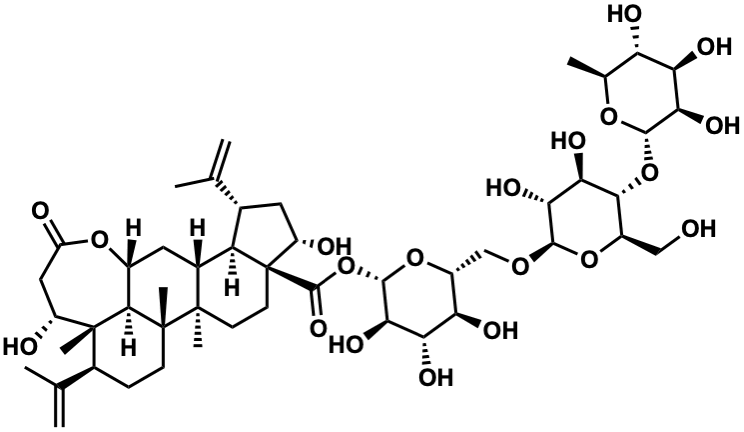InChI=1S/C48H74O20/c1-18(2)21-13-28(51)48(12-11-45(6)23(30(21)48)14-24-40-46(45,7)10-9-22(19(3)4)47(40,8)27(50)15-29(52)64-24)44(61)68-43-37(59)34(56)32(54)26(66-43)17-62-41-38(60)35(57)39(25(16-49)65-41)67-42-36(58)33(55)31(53)20(5)63-42/h20-28,30-43,49-51,53-60H,1,3,9-17H2,2,4-8H3/t20-,21-,22-,23+,24+,25+,26+,27+,28-,30+,31-,32+,33+,34-,35+,36+,37+,38+,39+,40-,41+,42-,43-,45+,46+,47+,48+/m0/s1 |