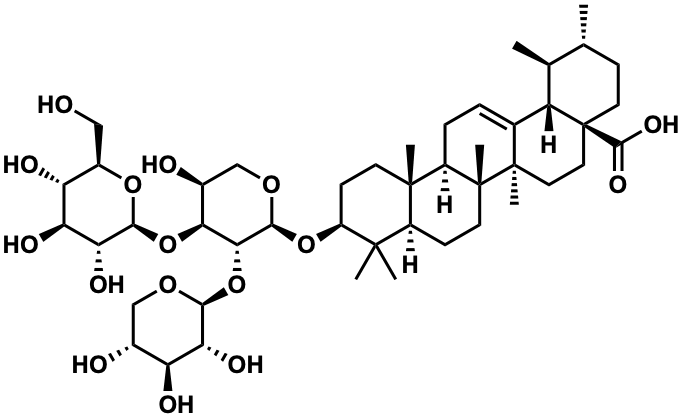 InChI=1S/C46H74O16/c1-21-10-15-46(41(55)56)17-16-44(6)23(30(46)22(21)2)8-9-28-43(5)13-12-29(42(3,4)27(43)11-14-45(28,44)7)60-40-37(62-38-34(53)31(50)24(48)19-57-38)36(25(49)20-58-40)61-39-35(54)33(52)32(51)26(18-47)59-39/h8,21-22,24-40,47-54H,9-20H2,1-7H3,(H,55,56)/t21-,22+,24-,25+,26-,27+,28-,29+,30+,31+,32-,33+,34-,35-,36+,37-,38+,39+,40+,43+,44-,45-,46+/m1/s1 |