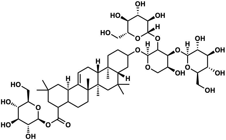 InChI=1S/C53H86O22/c1-49(2)15-24-23(25(16-49)44(67)75-47-41(66)38(63)35(60)30(19-56)72-47)11-13-52(6)26(24)8-9-31-51(5)12-10-22(14-32(51)50(3,4)21-53(31,52)7)69-48-43(74-46-40(65)37(62)34(59)29(18-55)71-46)42(27(57)20-68-48)73-45-39(64)36(61)33(58)28(17-54)70-45/h8,22-25,27-43,45-48,54-66H,9-21H2,1-7H3/t22?,23?,24-,25?,27+,28-,29-,30-,31-,32-,33-,34-,35-,36+,37+,38+,39-,40-,41-,42+,43?,45+,46+,47+,48+,51-,52-,53-/m1/s1 |