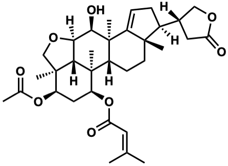 CC(=O)O[C@@H]1C[C@H](OC(=O)C=C(C)C)[C@@]2(C)[C@H]3[C@@H](OC[C@]13C)[C@@H](O)[C@@]1(C)C3=CC[C@@H]([C@@H]4COC(=O)C4)[C@]3(C)CC[C@@H]12 |