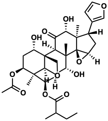 InChI=1S/C33H44O11/c1-7-15(2)27(39)43-28-29(4)19-11-20(35)31(6)25(32(19,14-41-28)21(36)12-22(29)42-16(3)34)24(37)26(38)30(5)18(17-8-9-40-13-17)10-23-33(30,31)44-23/h8-9,13,15,18-23,25-26,28,35-36,38H,7,10-12,14H2,1-6H3/t15?,18-,19-,20+,21-,22-,23+,25-,26-,28-,29+,30+,31+,32+,33+/m0/s1 |