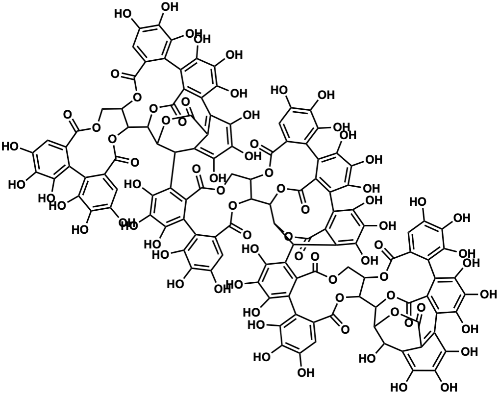 InChI=1S/C123H74O76/c124-18-1-11-28(68(138)61(18)131)29-12(2-19(125)62(132)69(29)139)113(174)191-100-25(8-185-109(11)170)188-110(171)13-3-20(126)63(133)70(140)30(13)37-54-40(80(150)92(162)77(37)147)42-57-48(88(158)97(167)82(42)152)50(103(194-118(57)179)106(100)197-120(54)181)46-52-35(75(145)95(165)86(46)156)33-16(6-23(129)66(136)73(33)143)114(175)192-101-26(9-186-116(52)177)189-111(172)14-4-21(127)64(134)71(141)31(14)38-55-41(81(151)93(163)78(38)148)43-58-49(89(159)98(168)83(43)153)51(104(195-119(58)180)107(101)198-121(55)182)47-53-36(76(146)96(166)87(47)157)34-17(7-24(130)67(137)74(34)144)115(176)193-102-27(10-187-117(53)178)190-112(173)15-5-22(128)65(135)72(142)32(15)39-56-44(84(154)94(164)79(39)149)45-59-60(90(160)99(169)85(45)155)91(161)105(196-123(59)184)108(102)199-122(56)183/h1-7,25-27,50-51,91,100-108,124-169H,8-10H2 |