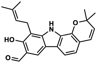CC(C)=CCc1c(O)c(C=O)cc2c1[nH]c1c3c(ccc12)C=CC(C)(C)O3 |