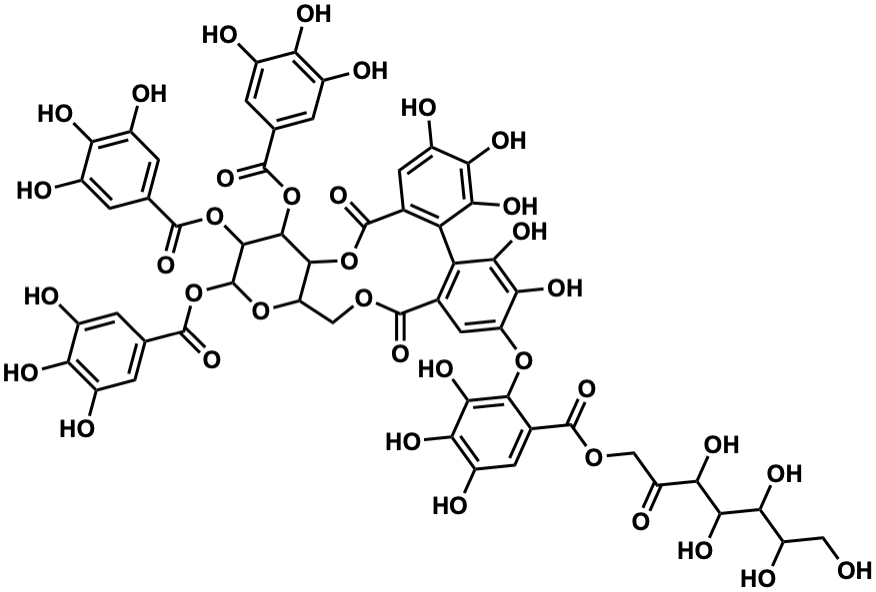 InChI=1S/C55H46O37/c56-10-27(65)38(72)43(77)39(73)28(66)11-85-53(83)18-8-26(64)37(71)44(78)45(18)87-29-9-17-32(42(76)40(29)74)31-16(7-25(63)36(70)41(31)75)54(84)89-46-30(12-86-52(17)82)88-55(92-51(81)15-5-23(61)35(69)24(62)6-15)48(91-50(80)14-3-21(59)34(68)22(60)4-14)47(46)90-49(79)13-1-19(57)33(67)20(58)2-13/h1-9,27,30,38-39,43,46-48,55-65,67-78H,10-12H2 |