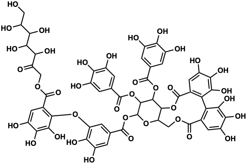 InChI=1S/C55H46O37/c56-10-27(65)39(73)43(77)40(74)28(66)11-85-53(83)18-9-26(64)38(72)44(78)45(18)87-29-6-15(5-23(61)35(29)69)51(81)92-55-48(91-50(80)14-3-21(59)34(68)22(60)4-14)47(90-49(79)13-1-19(57)33(67)20(58)2-13)46-30(88-55)12-86-52(82)16-7-24(62)36(70)41(75)31(16)32-17(54(84)89-46)8-25(63)37(71)42(32)76/h1-9,27,30,39-40,43,46-48,55-65,67-78H,10-12H2 |