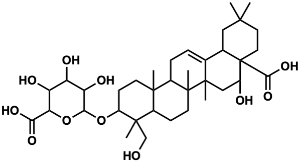 InChI=1S/C36H56O11/c1-31(2)13-14-36(30(44)45)19(15-31)18-7-8-21-32(3)11-10-23(46-29-26(41)24(39)25(40)27(47-29)28(42)43)33(4,17-37)20(32)9-12-34(21,5)35(18,6)16-22(36)38/h7,19-27,29,37-41H,8-17H2,1-6H3,(H,42,43)(H,44,45) |