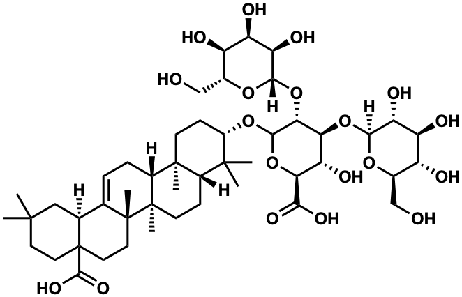 InChI=1S/C48H76O19/c1-43(2)14-16-48(42(60)61)17-15-46(6)21(22(48)18-43)8-9-26-45(5)12-11-27(44(3,4)25(45)10-13-47(26,46)7)64-41-37(67-40-33(56)31(54)29(52)24(20-50)63-40)35(34(57)36(66-41)38(58)59)65-39-32(55)30(53)28(51)23(19-49)62-39/h8,22-37,39-41,49-57H,9-20H2,1-7H3,(H,58,59)(H,60,61)/t22-,23+,24+,25-,26+,27-,28+,29+,30-,31+,32+,33+,34-,35-,36-,37+,39-,40-,41?,45-,46+,47+,48?/m0/s1 |