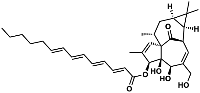 InChI=1S/C34H46O6/c1-6-7-8-9-10-11-12-13-14-15-16-17-27(36)40-31-22(2)20-33-23(3)18-26-28(32(26,4)5)25(30(33)38)19-24(21-35)29(37)34(31,33)39/h10-17,19-20,23,25-26,28-29,31,35,37,39H,6-9,18,21H2,1-5H3/b11-10+,13-12+,15-14+,17-16+/t23-,25-,26-,28+,29-,31+,33+,34+/m1/s1 |