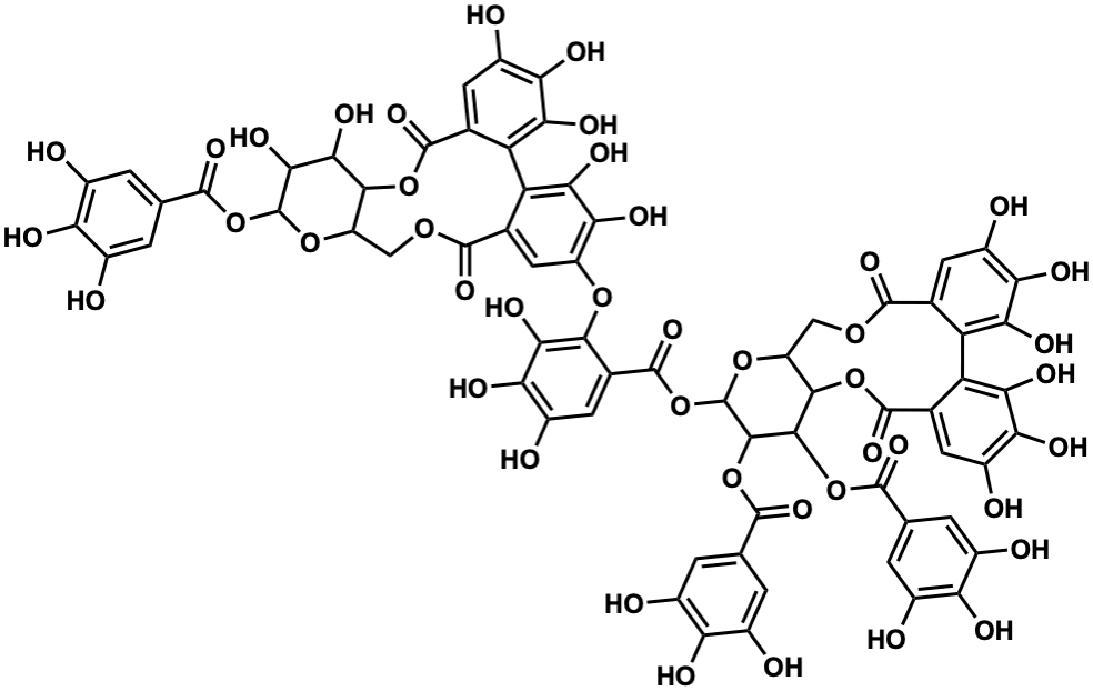InChI=1S/C68H50O44/c69-22-1-14(2-23(70)39(22)79)59(94)109-57-56-34(13-103-62(97)17-7-28(75)42(82)47(87)35(17)36-19(65(100)108-56)9-30(77)43(83)48(36)88)106-68(58(57)110-60(95)15-3-24(71)40(80)25(72)4-15)112-66(101)21-10-31(78)45(85)51(91)54(21)104-32-11-20-38(50(90)46(32)86)37-18(8-29(76)44(84)49(37)89)64(99)107-55-33(12-102-63(20)98)105-67(53(93)52(55)92)111-61(96)16-5-26(73)41(81)27(74)6-16/h1-11,33-34,52-53,55-58,67-93H,12-13H2 |