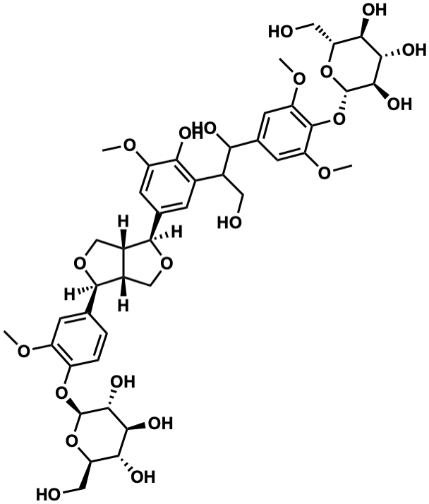 InChI=1S/C43H56O21/c1-55-25-8-17(5-6-24(25)61-42-37(53)35(51)33(49)29(13-45)62-42)39-22-15-60-40(23(22)16-59-39)19-7-20(32(48)26(11-19)56-2)21(12-44)31(47)18-9-27(57-3)41(28(10-18)58-4)64-43-38(54)36(52)34(50)30(14-46)63-43/h5-11,21-23,29-31,33-40,42-54H,12-16H2,1-4H3/t21?,22-,23-,29+,30+,31?,33+,34+,35-,36-,37+,38+,39+,40+,42+,43-/m0/s1 |