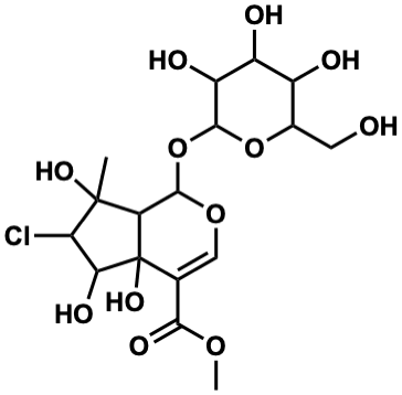 InChI=1S/C17H25ClO12/c1-16(25)10-15(30-14-9(22)8(21)7(20)6(3-19)29-14)28-4-5(13(24)27-2)17(10,26)12(23)11(16)18/h4,6-12,14-15,19-23,25-26H,3H2,1-2H3 |