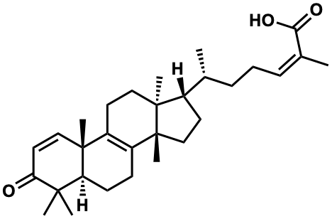 InChI=1S/C30H44O3/c1-19(9-8-10-20(2)26(32)33)21-13-17-30(7)23-11-12-24-27(3,4)25(31)15-16-28(24,5)22(23)14-18-29(21,30)6/h10,15-16,19,21,24H,8-9,11-14,17-18H2,1-7H3,(H,32,33)/b20-10-/t19-,21+,24+,28-,29+,30-/m1/s1 |