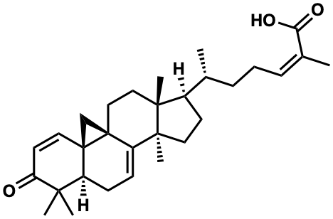 InChI=1S/C30H42O3/c1-19(8-7-9-20(2)25(32)33)21-12-14-28(6)23-11-10-22-26(3,4)24(31)13-15-29(22)18-30(23,29)17-16-27(21,28)5/h9,11,13,15,19,21-22H,7-8,10,12,14,16-18H2,1-6H3,(H,32,33)/b20-9-/t19-,21-,22+,27-,28+,29-,30+/m1/s1 |