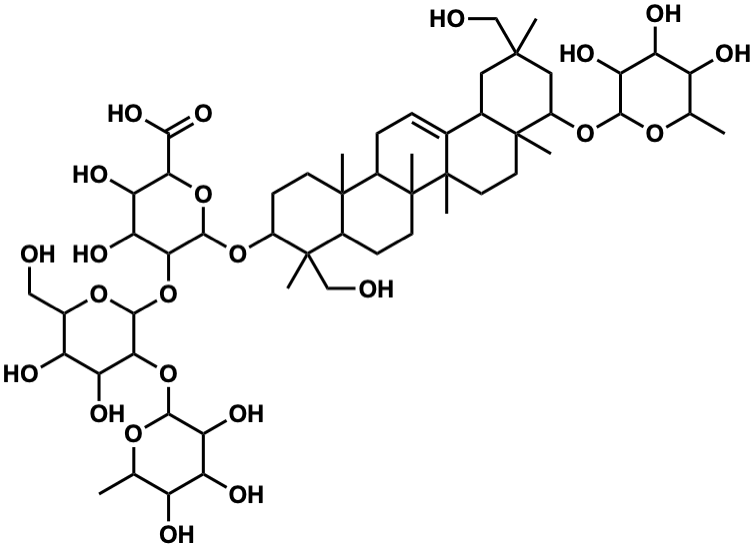 InChI=1S/C54H88O23/c1-22-31(58)34(61)39(66)45(70-22)74-30-18-49(3,20-56)17-25-24-9-10-28-51(5)13-12-29(52(6,21-57)27(51)11-14-54(28,8)53(24,7)16-15-50(25,30)4)73-48-43(38(65)37(64)41(75-48)44(68)69)77-47-42(36(63)33(60)26(19-55)72-47)76-46-40(67)35(62)32(59)23(2)71-46/h9,22-23,25-43,45-48,55-67H,10-21H2,1-8H3,(H,68,69) |