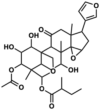 CCC(C)C(=O)OC1OCC23C(O)C(O)C(OC(C)=O)C1(C)C2CC(O)C1(C)C3C(=O)CC2(C)C(c3ccoc3)CC3OC321 |