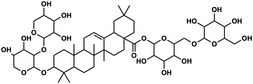 InChI=1S/C52H84O21/c1-47(2)14-16-52(46(65)73-44-40(64)37(61)35(59)28(70-44)22-68-42-39(63)36(60)34(58)27(19-53)69-42)17-15-50(6)23(24(52)18-47)8-9-30-49(5)12-11-31(48(3,4)29(49)10-13-51(30,50)7)71-45-41(33(57)26(55)21-67-45)72-43-38(62)32(56)25(54)20-66-43/h8,24-45,53-64H,9-22H2,1-7H3 |