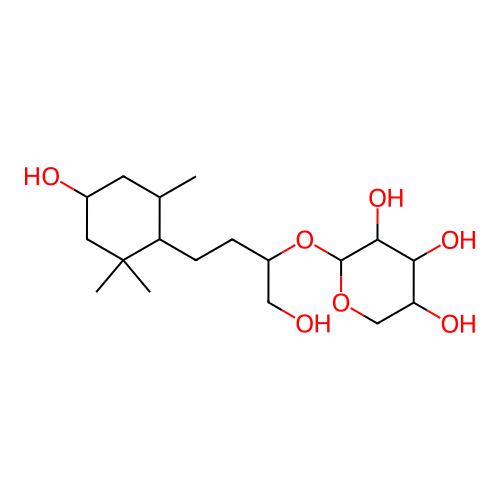InChI=1S/C18H34O7/c1-10-6-11(20)7-18(2,3)13(10)5-4-12(8-19)25-17-16(23)15(22)14(21)9-24-17/h10-17,19-23H,4-9H2,1-3H3/t10-,11+,12+,13+,14-,15+,16-,17+/m1/s1 |