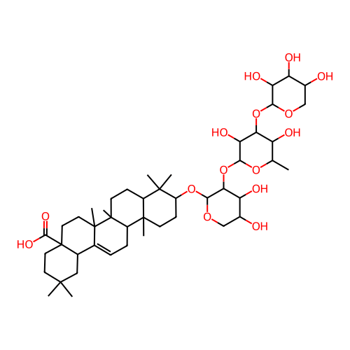 InChI=1S/C46H74O15/c1-22-30(49)35(60-37-33(52)31(50)25(47)20-56-37)34(53)38(58-22)61-36-32(51)26(48)21-57-39(36)59-29-12-13-43(6)27(42(29,4)5)11-14-45(8)28(43)10-9-23-24-19-41(2,3)15-17-46(24,40(54)55)18-16-44(23,45)7/h9,22,24-39,47-53H,10-21H2,1-8H3,(H,54,55)/t22-,24-,25-,26-,27-,28+,29-,30-,31-,32-,33+,34+,35+,36+,37-,38-,39-,43-,44+,45+,46-/m0/s1 |
