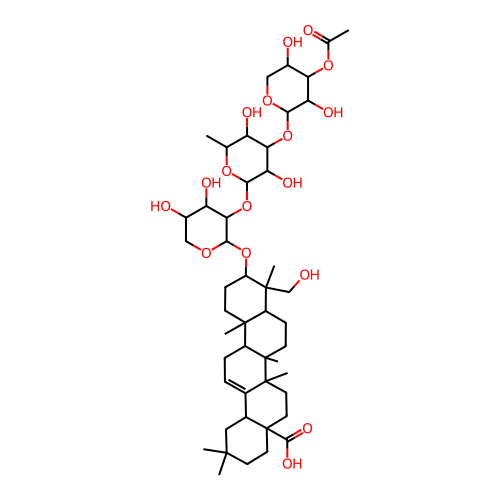 InChI=1S/C48H76O17/c1-23-32(53)37(64-39-34(55)36(62-24(2)50)28(52)21-59-39)35(56)40(61-23)65-38-33(54)27(51)20-60-41(38)63-31-12-13-44(5)29(45(31,6)22-49)11-14-47(8)30(44)10-9-25-26-19-43(3,4)15-17-48(26,42(57)58)18-16-46(25,47)7/h9,23,26-41,49,51-56H,10-22H2,1-8H3,(H,57,58)/t23-,26-,27-,28+,29+,30+,31-,32-,33-,34+,35+,36-,37+,38+,39-,40-,41-,44-,45-,46+,47+,48-/m0/s1 |