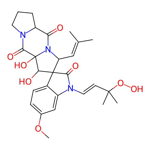 (1S,2S,3S,5aS,10aR)-1,5a,6,7,8,10a-hexahydro-1'-(3-hydroperoxy-3-methyl-1-buten-1-yl)-1,10a-dihydroxy-6'-methoxy-3-(2-methyl-1-propen-1-yl)-spiro[5H,10H-dipyrrolo[1,2-a:1',2'-d]pyrazine-2(3H),3'-[3H]indole]-2',5,10(1'H)-trione |