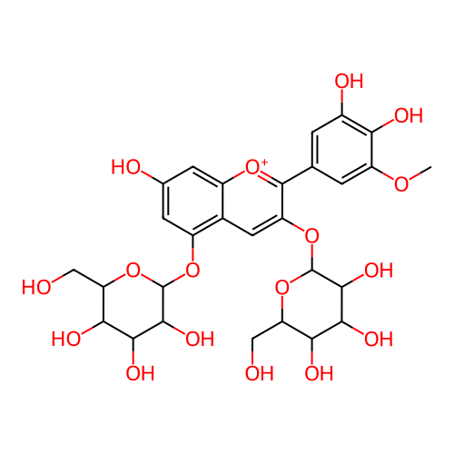 COc1cc(-c2[o+]c3cc(O)cc(OC4OC(CO)C(O)C(O)C4O)c3cc2OC2OC(CO)C(O)C(O)C2O)cc(O)c1O |