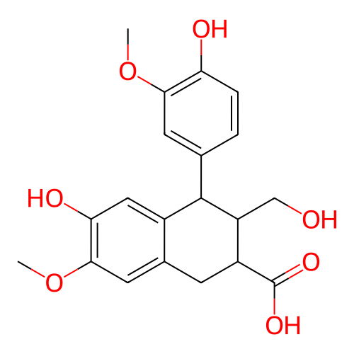 InChI=1S/C20H22O7/c1-26-17-6-10(3-4-15(17)22)19-12-8-16(23)18(27-2)7-11(12)5-13(20(24)25)14(19)9-21/h3-4,6-8,13-14,19,21-23H,5,9H2,1-2H3,(H,24,25) |