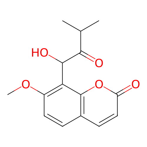 InChI=1S/C15H16O5/c1-8(2)13(17)14(18)12-10(19-3)6-4-9-5-7-11(16)20-15(9)12/h4-8,14,18H,1-3H3 |