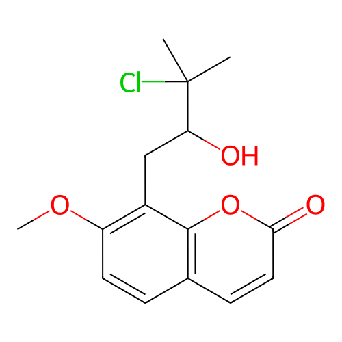 InChI=1/C15H17ClO4/c1-15(2,16)12(17)8-10-11(19-3)6-4-9-5-7-13(18)20-14(9)10/h4-7,12,17H,8H2,1-3H3 |