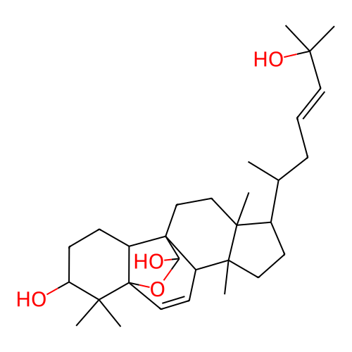 InChI=1S/C30H48O4/c1-19(9-8-14-25(2,3)33)20-12-15-28(7)21-13-16-30-22(10-11-23(31)26(30,4)5)29(21,24(32)34-30)18-17-27(20,28)6/h8,13-14,16,19-24,31-33H,9-12,15,17-18H2,1-7H3/b14-8+/t19-,20-,21+,22+,23+,24-,27-,28+,29+,30-/m1/s1 |