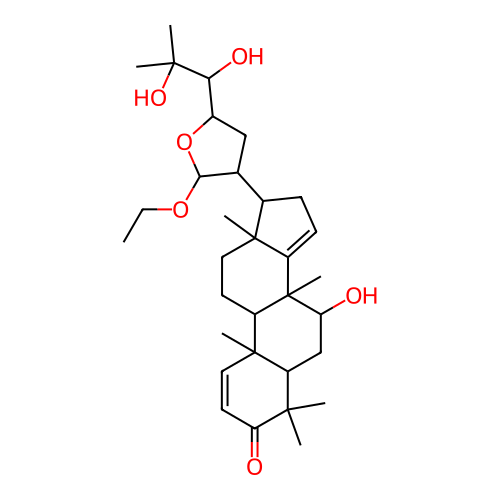 InChI=1S/C32H50O6/c1-9-37-27-18(16-20(38-27)26(35)29(4,5)36)19-10-11-21-30(19,6)14-12-22-31(7)15-13-24(33)28(2,3)23(31)17-25(34)32(21,22)8/h11,13,15,18-20,22-23,25-27,34-36H,9-10,12,14,16-17H2,1-8H3/t18-,19-,20+,22+,23-,25+,26+,27-,30-,31+,32-/m0/s1 |