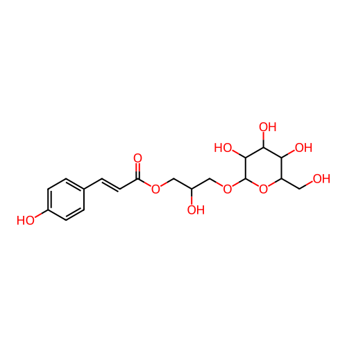 InChI=1S/C18H24O10/c19-7-13-15(23)16(24)17(25)18(28-13)27-9-12(21)8-26-14(22)6-3-10-1-4-11(20)5-2-10/h1-6,12-13,15-21,23-25H,7-9H2/b6-3+/t12-,13-,15-,16+,17-,18-/m1/s1;InChI=1S/C18H24O10/c19-7-13-15(23)16(24)17(25)18(28-13)27-9-12(21)8-26-14(22)6-3-10-1-4-11(20)5-2-10/h1-6,12-13,15-21,23-25H,7-9H2/b6-3+/t12-,13?,15?,16?,17?,18?/m1/s1 |
