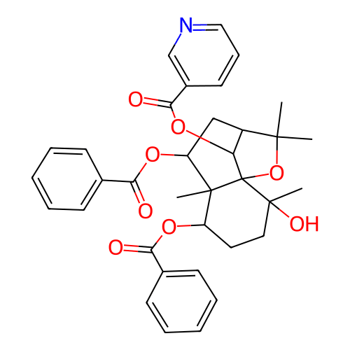InChI=1S/C35H37NO8/c1-32(2)25-20-27(42-30(38)23-14-9-6-10-15-23)34(4)26(41-29(37)22-12-7-5-8-13-22)17-18-33(3,40)35(34,44-32)28(25)43-31(39)24-16-11-19-36-21-24/h5-16,19,21,25-28,40H,17-18,20H2,1-4H3;InChI=1S/C35H37NO8/c1-32(2)25-20-27(42-30(38)23-14-9-6-10-15-23)34(4)26(41-29(37)22-12-7-5-8-13-22)17-18-33(3,40)35(34,44-32)28(25)43-31(39)24-16-11-19-36-21-24/h5-16,19,21,25-28,40H,17-18,20H2,1-4H3/t25-,26+,27+,28-,33+,34+,35+/m1/s1;InChI=1S/C35H37NO8/c1-32(2)25-20-27(42-30(38)23-14-9-6-10-15-23)34(4)26(41-29(37)22-12-7-5-8-13-22)17-18-33(3,40)35(34,44-32)28(25)43-31(39)24-16-11-19-36-21-24/h5-16,19,21,25-28,40H,17-18,20H2,1-4H3/t25-,26+,27+,28-,33+,34+,35+/m0/s1 |