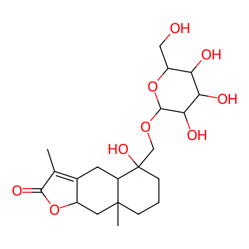 InChI=1S/C21H32O9/c1-10-11-6-14-20(2,7-12(11)29-18(10)26)4-3-5-21(14,27)9-28-19-17(25)16(24)15(23)13(8-22)30-19/h12-17,19,22-25,27H,3-9H2,1-2H3/t12-,13+,14+,15+,16-,17+,19+,20+,21-/m0/s1 |