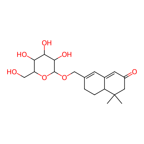 InChI=1S/C19H28O7/c1-19(2)7-12(21)6-11-5-10(3-4-13(11)19)9-25-18-17(24)16(23)15(22)14(8-20)26-18/h5-6,13-18,20,22-24H,3-4,7-9H2,1-2H3/t13-,14+,15+,16-,17+,18+/m0/s1 |