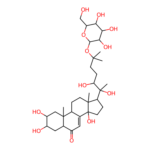 InChI=1S/C33H54O12/c1-29(2,45-28-27(41)26(40)25(39)22(15-34)44-28)9-8-24(38)32(5,42)23-7-11-33(43)17-12-19(35)18-13-20(36)21(37)14-30(18,3)16(17)6-10-31(23,33)4/h12,16,18,20-28,34,36-43H,6-11,13-15H2,1-5H3/t16-,18-,20+,21-,22+,23-,24+,25+,26-,27+,28-,30+,31+,32+,33+/m0/s1 |