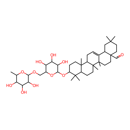 InChI=1S/C42H68O11/c1-22-29(44)31(46)33(48)35(51-22)50-20-25-30(45)32(47)34(49)36(52-25)53-28-12-13-39(6)26(38(28,4)5)11-14-41(8)27(39)10-9-23-24-19-37(2,3)15-17-42(24,21-43)18-16-40(23,41)7/h9,21-22,24-36,44-49H,10-20H2,1-8H3/t22-,24-,25+,26-,27+,28-,29-,30+,31+,32-,33+,34+,35+,36-,39-,40+,41+,42+/m0/s1 |