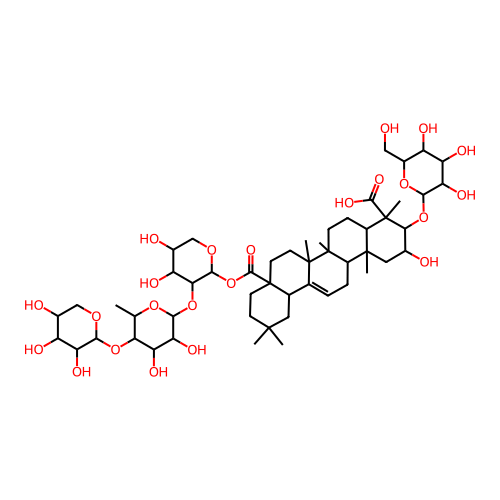 28-(O-beta-D-Xylopyranosyl-(1->4)-O-6-deoxy-alpha-L-mannopyranosyl-(1->2)-alpha-L-arabinopyranosyl) (2beta,3beta,4alpha)-3-(beta-D-glucopyranosyloxy)-2-hydroxyolean-12-ene-23,28-dioate |