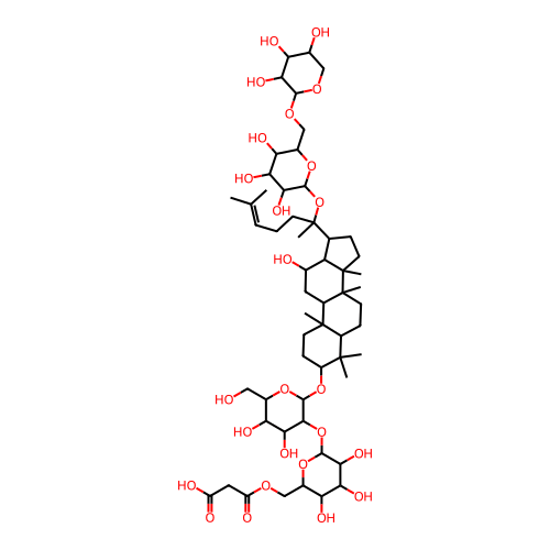 InChI=1S/C56H92O25/c1-24(2)10-9-14-56(8,81-50-46(72)42(68)40(66)30(78-50)23-75-48-44(70)37(63)27(59)21-74-48)25-11-16-55(7)36(25)26(58)18-32-53(5)15-13-33(52(3,4)31(53)12-17-54(32,55)6)79-51-47(43(69)38(64)28(20-57)76-51)80-49-45(71)41(67)39(65)29(77-49)22-73-35(62)19-34(60)61/h10,25-33,36-51,57-59,63-72H,9,11-23H2,1-8H3,(H,60,61)/t25-,26+,27+,28+,29+,30+,31-,32+,33-,36-,37-,38+,39+,40+,41-,42-,43-,44+,45+,46+,47+,48-,49-,50-,51-,53-,54+,55+,56-/m0/s1 |