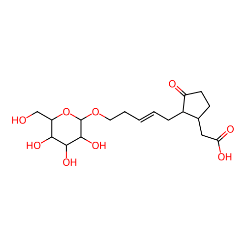 InChI=1S/C18H28O9/c19-9-13-15(23)16(24)17(25)18(27-13)26-7-3-1-2-4-11-10(8-14(21)22)5-6-12(11)20/h1-2,10-11,13,15-19,23-25H,3-9H2,(H,21,22)/b2-1-/t10-,11+,13-,15-,16+,17-,18-/m1/s1;InChI=1S/C18H28O9/c19-9-13-15(23)16(24)17(25)18(27-13)26-7-3-1-2-4-11-10(8-14(21)22)5-6-12(11)20/h1-2,10-11,13,15-19,23-25H,3-9H2,(H,21,22)/b2-1-/t10-,11-,13?,15?,16?,17?,18?/m0/s1;InChI=1S/C18H28O9/c19-9-13-15(23)16(24)17(25)18(27-13)26-7-3-1-2-4-11-10(8-14(21)22)5-6-12(11)20/h1-2,10-11,13,15-19,23-25H,3-9H2,(H,21,22)/b2-1-/t10-,11-,13?,15?,16?,17?,18?/m1/s1 |